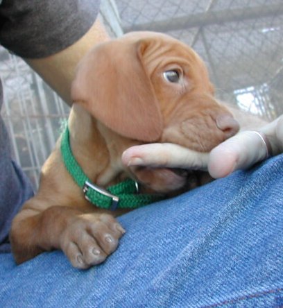 The story about Miss Pink was consistent and true (you can see photos of her motoring to her next lap a couple of picture rows below), until she got to Jennifer. For some reason she was able to share when the object being shared was Jennifer's lap. Marie was also a much anticipated destination on the Puppy Yard Tour.
