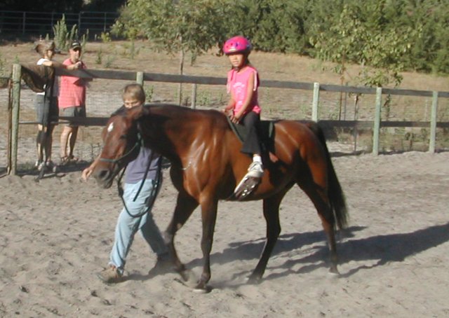 Maimai, Judy's niece visited Al. First, she got on Al's good side by making her jewelry - note the pearl necklace. Then she got me to lead Al around the arena until she got comfortable - and then the sky was the limit!