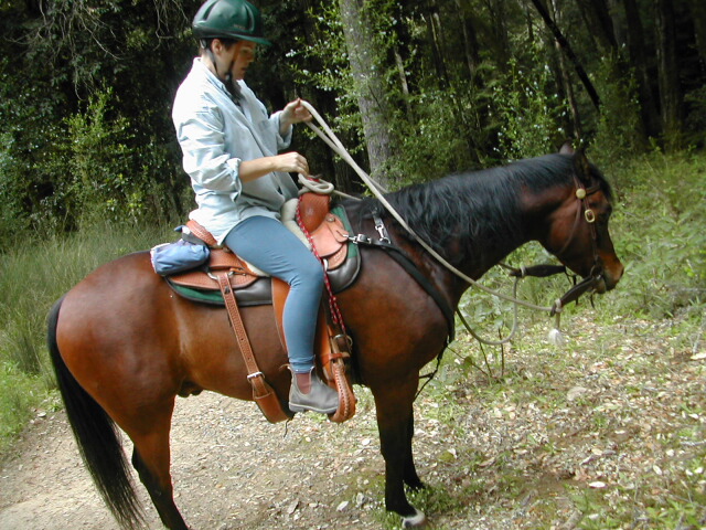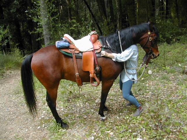 Contrary to what you may be thinking, this is a picture of Shawn attempting to get her saddled centered on Elias - it just didn't come out that way.