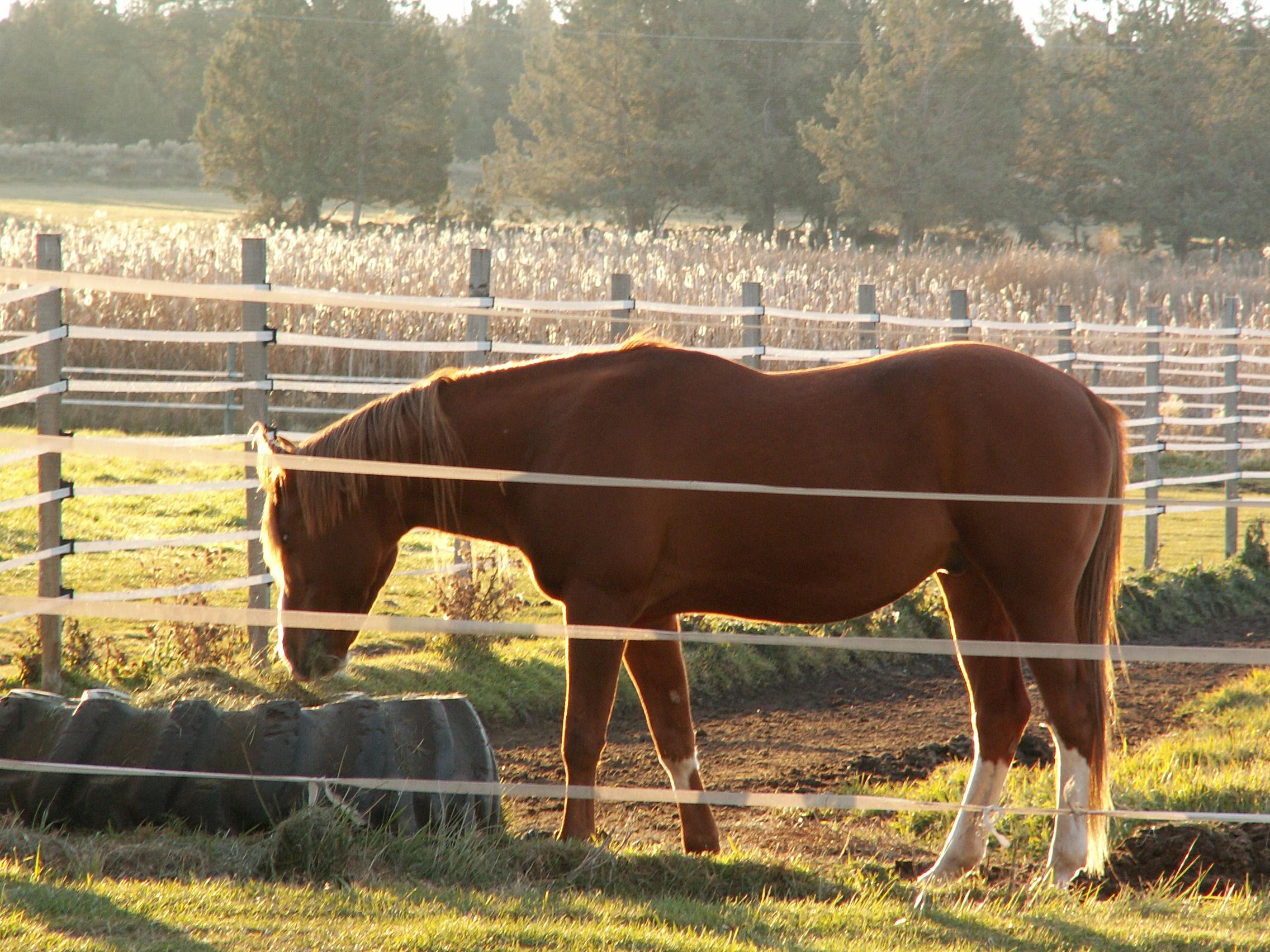 Judy, Caitlin and Valena got toured around the ranch. I caught up with them for a few minutes, just to see where they went. They saw Splash, Jien's sire - you can tell him by the "Crabbett Bracelet" on his right front leg - the white that goes all the way around the leg. The other pictures are of various mares. I think. The white faced one on the end of the row of pictures is either Jien's mother or grandmother, Surprise.