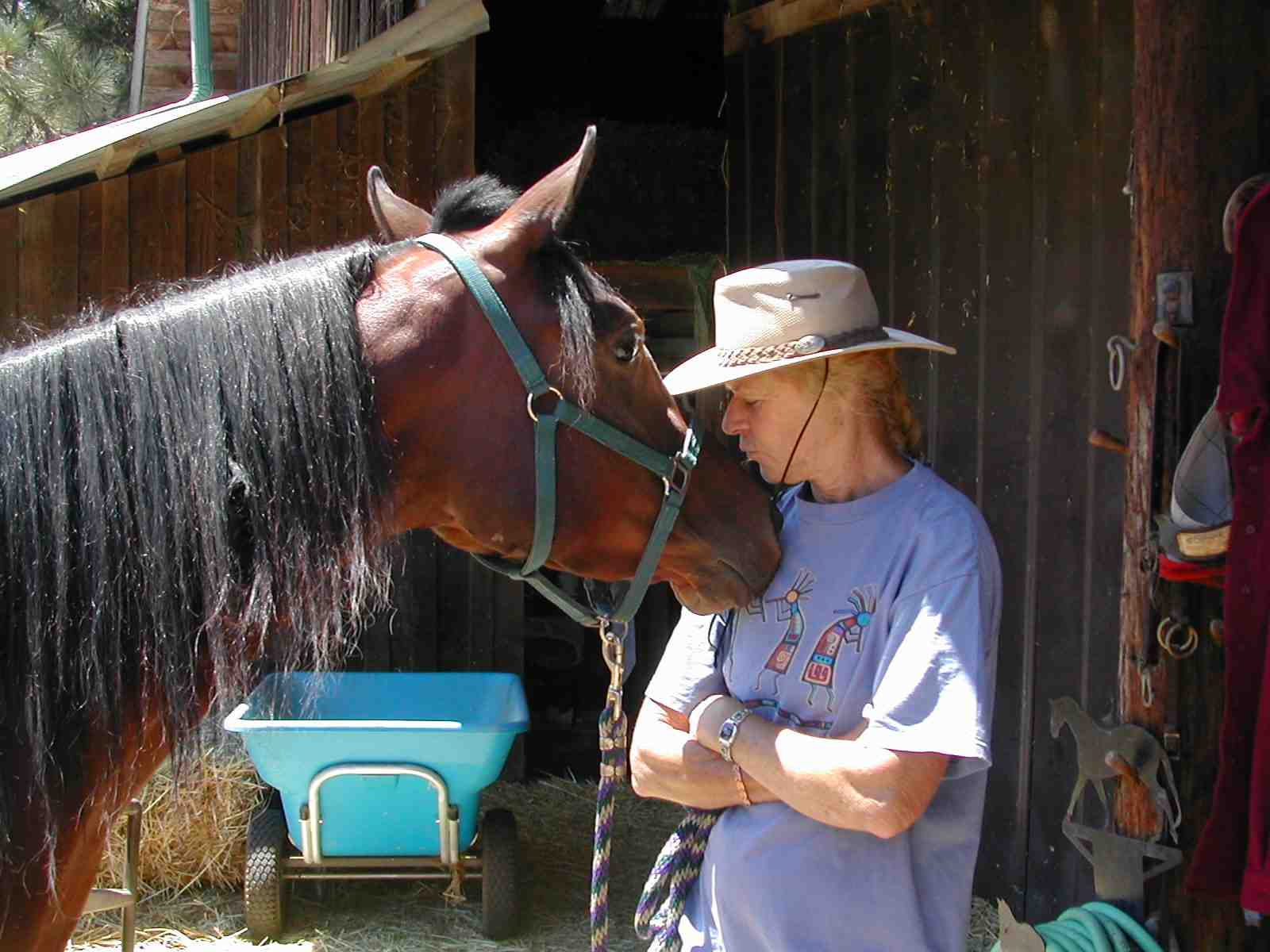 Judy got a new horse for her birthday (June 13) - a four year old Arabian (what else?) mare named Kharina. Kharina's full brother, Tonto, has completed Tevis several times and Kharina looks like she has the right stuff, too.